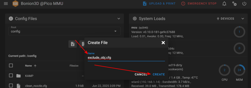 {action_raise_error(“[exclude_object] is not enabled”)}